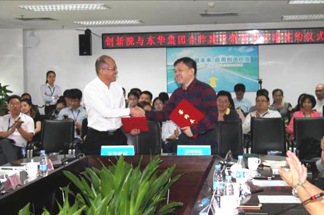 深圳東華集團(tuán)總經(jīng)理王立新同志和創(chuàng)新設(shè)計(jì)研究院院長(zhǎng)趙宇波博士共同在合作意向書(shū)上簽字。全國(guó)人大常委原副委員長(zhǎng)、中國(guó)科學(xué)院原院長(zhǎng)、兩院院士路甬祥,深圳市、南山區(qū)、中國(guó)創(chuàng)新設(shè)計(jì)產(chǎn)業(yè)戰(zhàn)略聯(lián)盟、深圳工業(yè)設(shè)計(jì)行業(yè)協(xié)會(huì)、濟(jì)寧市科技局、深圳先進(jìn)院、海爾集團(tuán)等有關(guān)單位的領(lǐng)導(dǎo)及專(zhuān)家出席會(huì)議并見(jiàn)證了簽約。