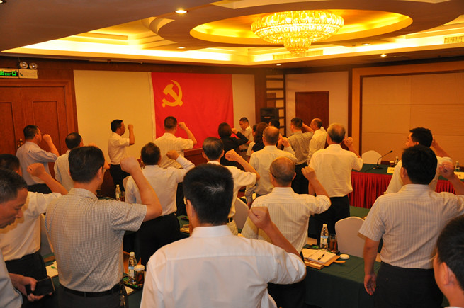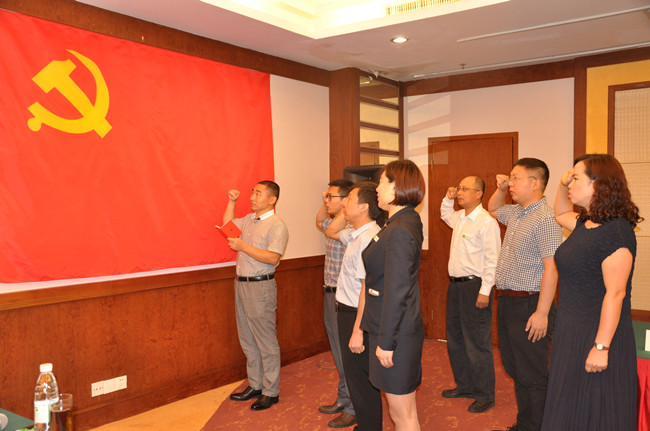 面對黨旗,公司近30名黨員干部、6名預備黨員宣讀誓詞:“我志愿加入中國共產黨,擁護黨的綱領,遵守黨的章程……”。黨員們舉起右拳,在鮮紅的黨旗下莊嚴宣誓,立下自己對黨忠誠的誓言,表達了為黨的事業奮斗終身的決心和愿望。