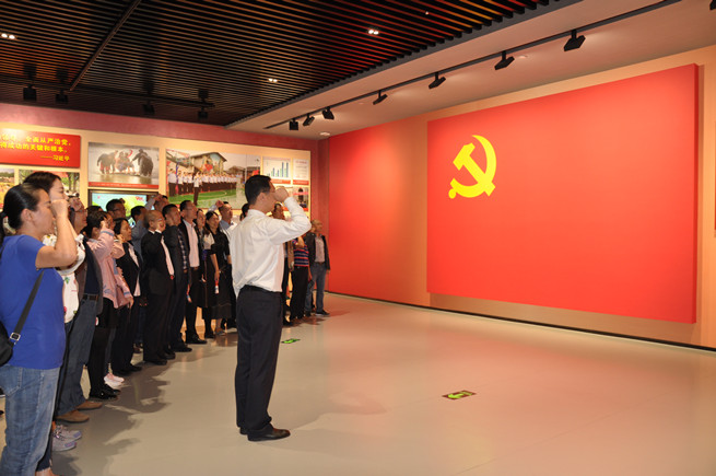 全體黨員在展廳內重溫入黨誓詞