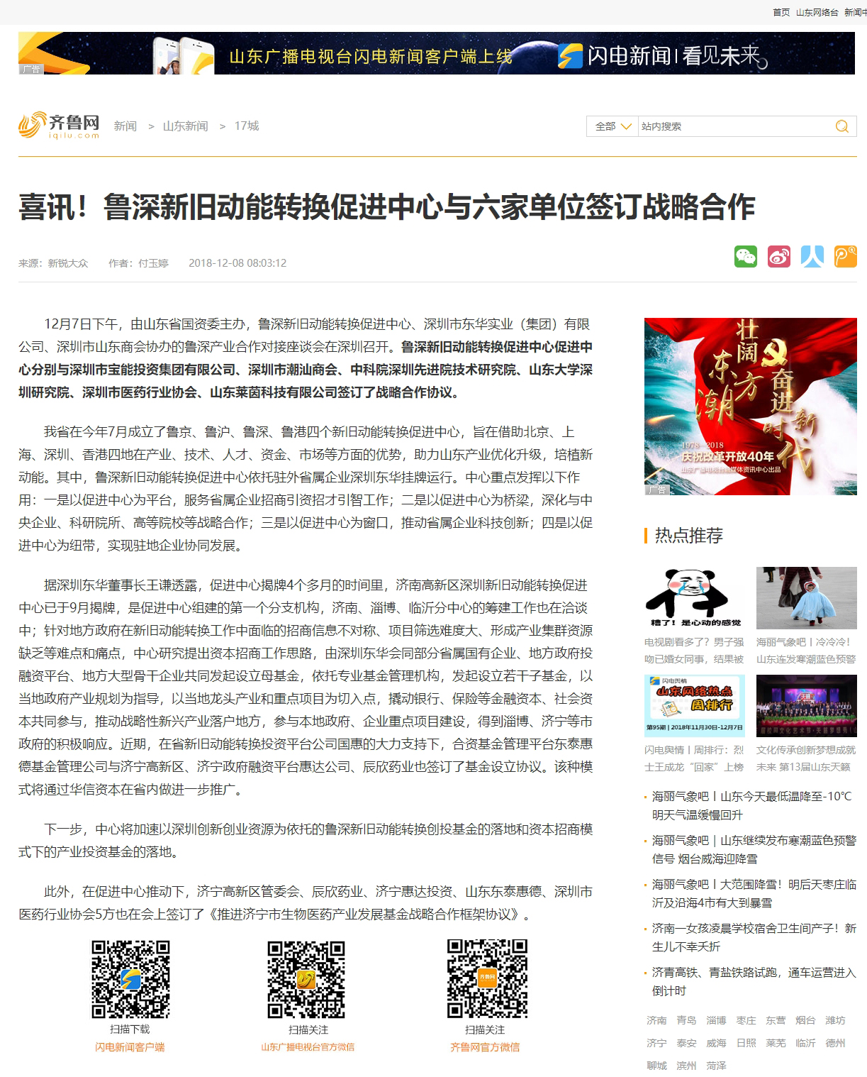 齊魯網(wǎng):喜訊!魯深新舊動能轉(zhuǎn)換促進(jìn)中心與六家單位簽訂戰(zhàn)略合作