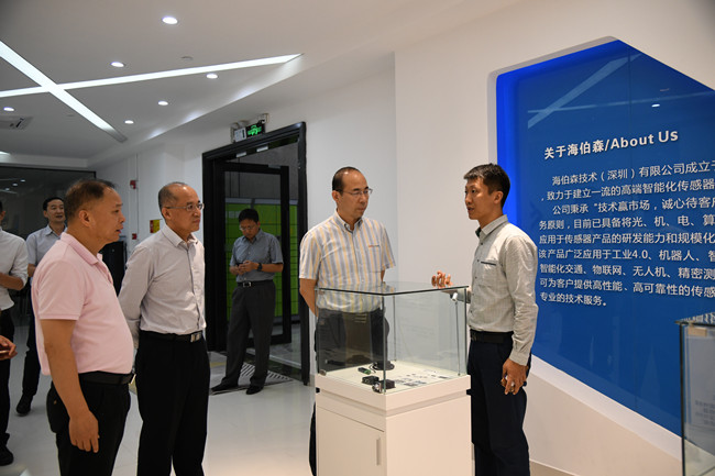 調(diào)研中,張志波同志還參觀了海伯森辦公區(qū) 、工程研發(fā)中心,鼓勵王國安博士團(tuán)隊在中國高端智能傳感器領(lǐng)域取得更大的成績,并希望下一步與深圳東華、山科控股、華信資本等山東省屬企業(yè)加強(qiáng)合作。