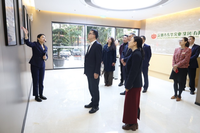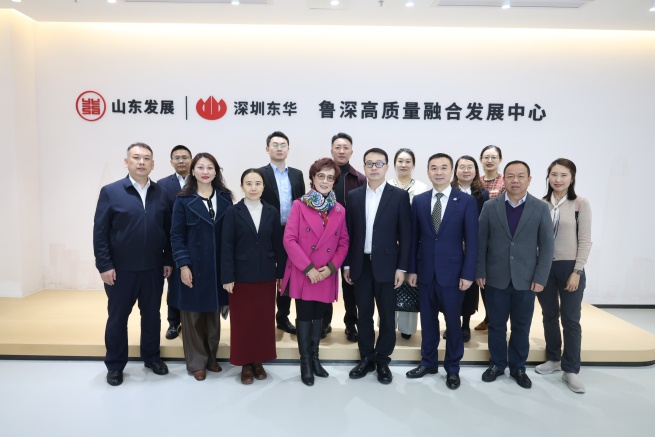 2月7日,深圳市旅游協會副會長、深圳市酒店業商會榮譽主席、創會會長鄭瑋玲,深圳市旅游協會常務副會長宋強,深圳市酒店業商會會長、深圳市華僑城酒店發展有限公司副總經理陳智一行到訪深圳東華。訪問團參觀了山東發展•魯深高質量融合發展中心。參觀結束后,深圳東華黨委書記、董事長姜國,黨委委員、副總經理付曉與訪問團進行友好交流。