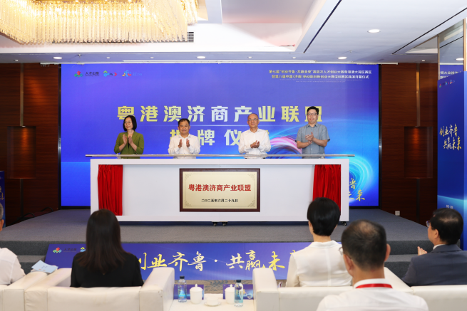 活動中,山東省委組織部人才工作二處負責同志頒發了濟南市“校友雙招雙引大使”聘書,濟南市委組織部副部長、市委人才辦常務副主任王玉躍頒發了“海右伯樂”聘書,“粵港澳濟商產業聯盟”正式揭牌,與會領導共同啟動大賽路演儀式。
