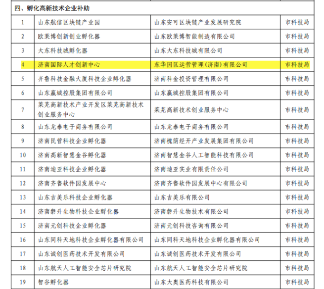 濟(jì)南國(guó)際人才創(chuàng)新中心獲批孵化高新技術(shù)企業(yè)補(bǔ)助