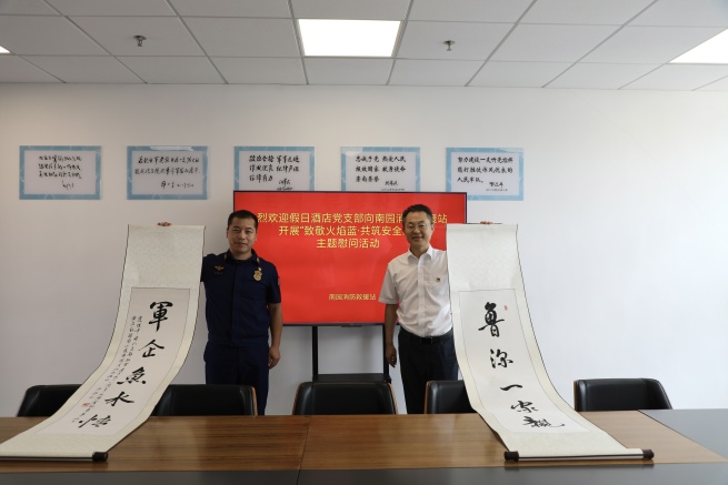 王磊親切慰問了堅守一線的消防指戰員,為他們送上了礦泉水和西瓜等防暑降溫物資,并向消防站贈送了“軍企魚水情、魯深一家親”對聯,對消防指戰員們不畏酷暑、堅守崗位的奉獻精神表達崇高的敬意。