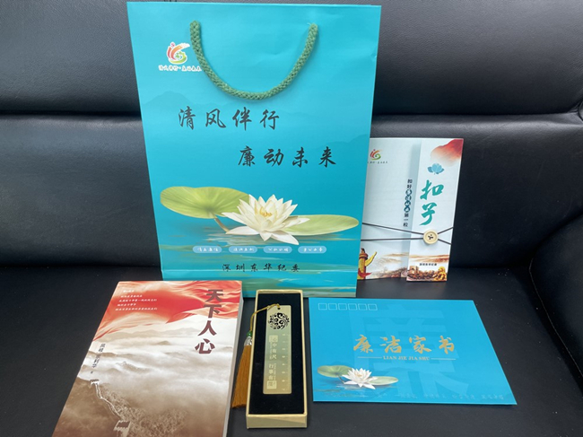 為深入推進“清風伴行·廉動未來”廉潔文化建設,近日,深圳東華紀委為全體在職黨員發放廉潔“大禮包”,以文化潤廉,讓廉潔從業深入人心。
