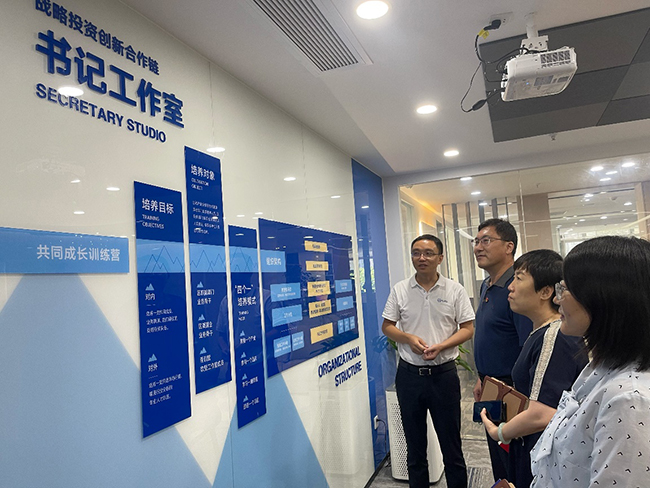 總部一支部黨員與業務相關部室負責人在合規管理、投前投后管理、風險揭示和流程、數字化、人才支撐以及支部建設等方面進行了充分的交流。南山戰新投工作務實有效、人員素質高、專業性強,充分參與盡調,利用法律、財務專業人員提供項目客觀內核意見等做法給大家留下深刻的印象,特別在黨建引領方面,最鮮明的特點是成立書記工作室,通過黨建活動與投資領域相關的行業協會、研究所等機構和政府部門建立聯系,定期組織產業研討會,邀請專家進行研討細分行業發展和投資機會,黨建活動成為南山戰新投搭建平臺、整合資源、促進經營發展能力的重要抓手。
