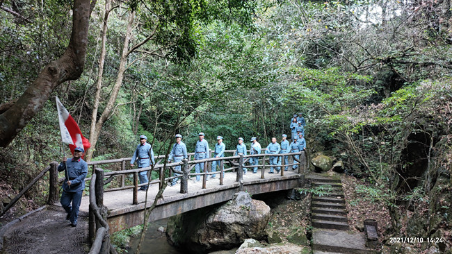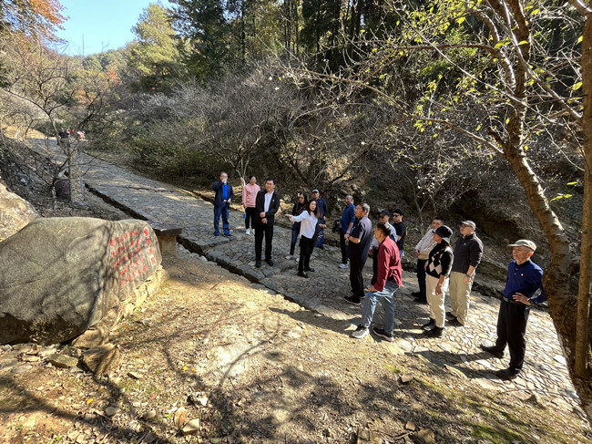 沿著崎嶇的道路,黨員干部們隨后來到了梅關古道。這里被稱為“嶺南第一關”,是一條用碎石砌成的千年古道。當年,開國元勛陳毅帶領部隊轉戰梅嶺一帶,進行了艱苦卓絕的三年游擊戰爭,留下了光輝的足跡,在臨危之際寫下了壯志凌云的《梅嶺三章》革命詩。黨員干部們認真聆聽了帶隊老師的講解,深刻感受到革命先輩為中華民族崛起所做的不懈努力和豐功偉績。