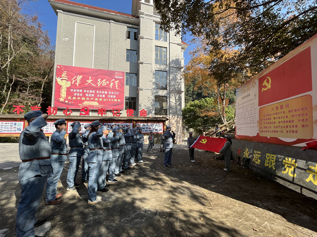 隨后,黨員干部們前往了位于粵北樂昌大山深處的龍王潭。這里是紅軍長征戰斗過的地方,中央紅軍充分發揚不怕犧牲、艱苦奮斗的精神,連續突破了國民黨設置的三道封鎖線,順利通過了中央紅軍萬里征途的第一站。在燦爛的陽光和火紅的黨旗下,全體黨員神情堅定地重溫了入黨誓詞,進一步牢記了入黨時的莊嚴承諾,堅定了理想信念。